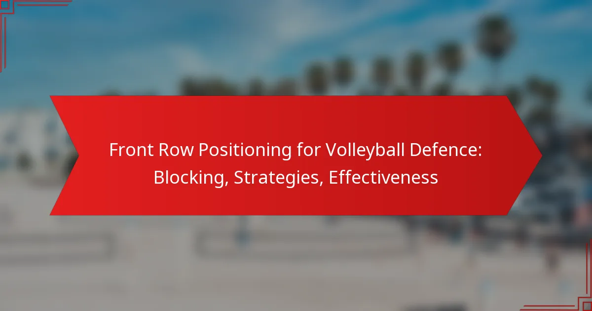 Front row positioning in volleyball defence refers to the strategic placement of players near the net to block attacks and defend against opposing hitters. This positioning is crucial for effective defence, as it directly influences a team’s ability to prevent points and maintain control of the game.
