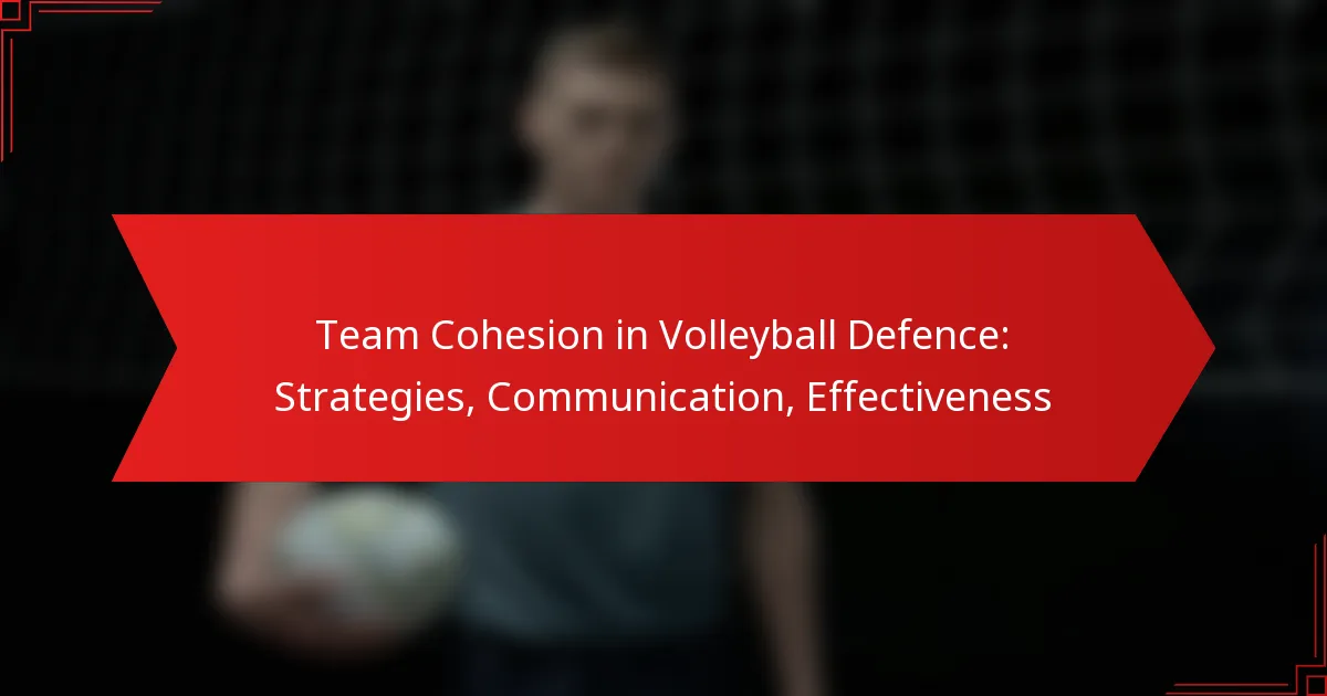 Team cohesion is essential for effective volleyball defence, as it fosters collaboration, trust, and clear communication among players. By implementing targeted strategies such as specialised drills and defined roles, teams can enhance their defensive performance and responsiveness during matches. Evaluating metrics like defensive efficiency and communication can further highlight areas for improvement and strengthen overall team synergy.